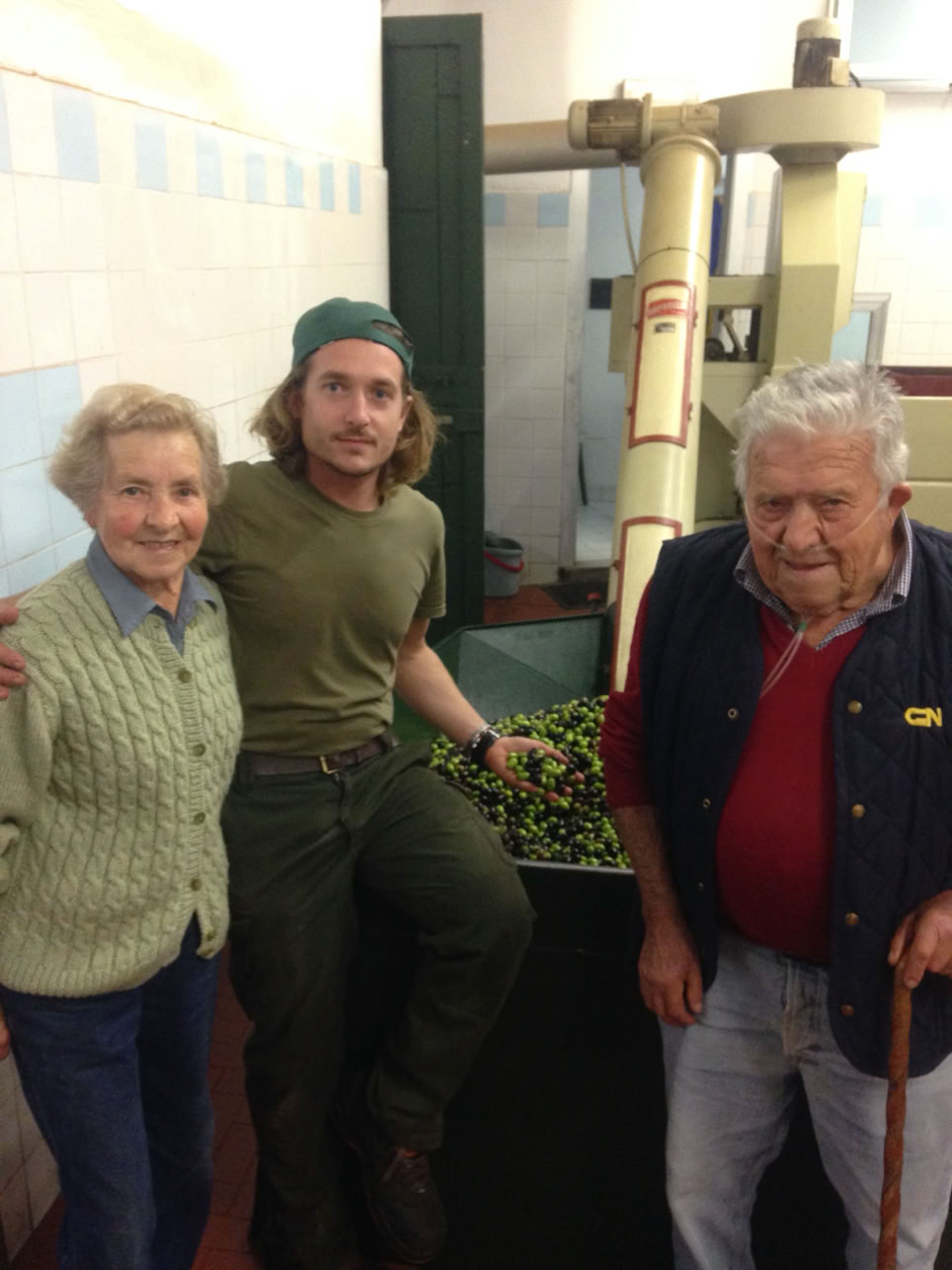 Questi signori sono i miei Nonni. Mio nonno Amedeo, ha superato i novanta e mia nonna, Giuseppina gli ottanta. Vanno ancora in campagna con la stessa passione di quella che ormai possiamo chiamare vita. Hanno curato i loro ulivi come figli. Portano rispetto assoluto per quelle piante che hanno donato loro la possibilità di crescere due figli, con tanta fatica certo, quando però il duro lavoro ripagava con la stessa moneta gli sforzi fatti. Oggi quelle stesse piante le hanno affidate alla nostra impresa famigliare, dove tra mille burocrazie assurde, cerchiamo di portare avanti una storia millenaria. Prima di ogni cosa queste piante sono un esempio di vita, di valori, di sacrifici ma sopratutto di rispetto per persone uniche e fantastiche come i miei nonni che hanno tutelato con fatti e non a parole un territorio unico al mondo.